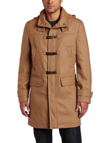 Fashion melton toggle coat with faux leather trims and contrasting wool removable hoodie.../ Kenneth Cole Men's Melton Toggle Coat, Saddle, Large / Mens Gold